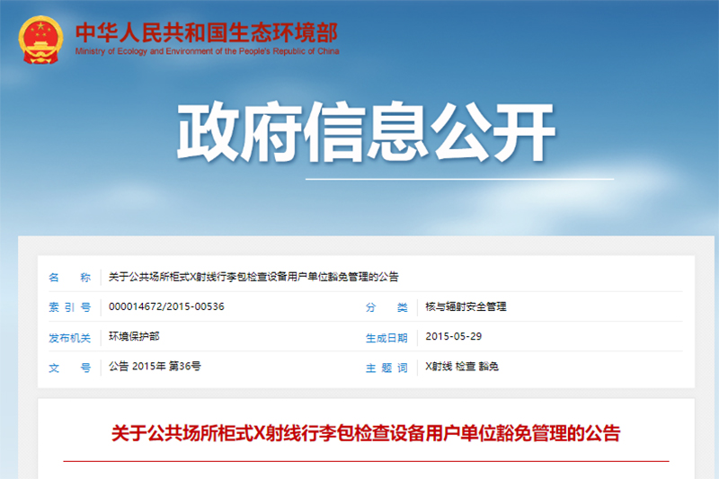 關(guān)于公共場(chǎng)所柜式X射線行李包檢查設(shè)備用戶(hù)單位豁免管理的公告
